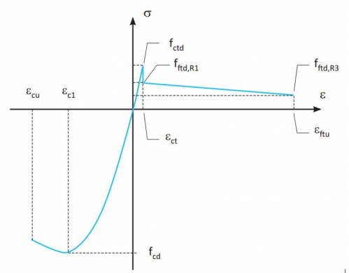 Alla olevan kuvan mukaista lineaarisesti muuttuvaa (nousevaa tai laskevaa) vetojännityskuvaajaa voidaan käyttää sovelluksissa, jotka vaativat tarkempia laskelmia. Myötölujittuvan kuitubetonin jännitys-venymäkuvaaja on nouseva välillä εct - εftu.